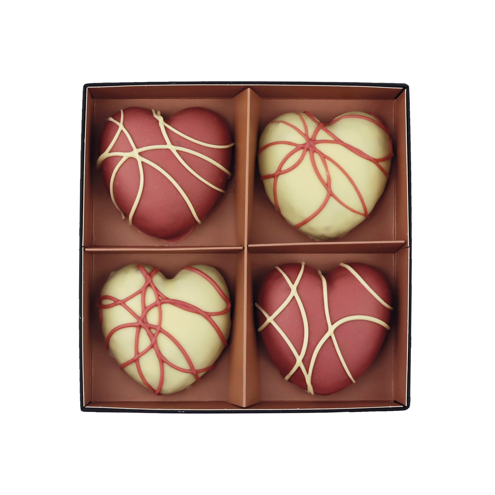 Een box handgemaakte Brownie Hearts bevat 4 stuks.