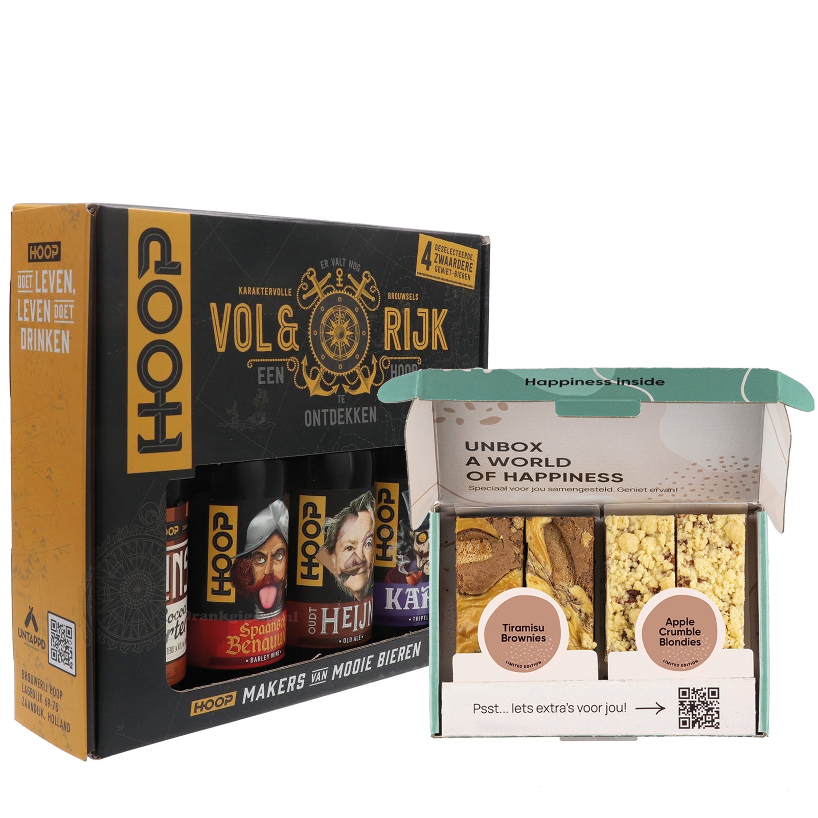 Met dit heerlijke kerstcadeau zit je altijd goed. Een Browniebox met 2 Tiramisu Brownies en 2 Apple Crumble Brownies. Samen met dit smaakvolle bierpakket van HOOP geef je met dit cadeau een gegarandeerd avondje smullen!