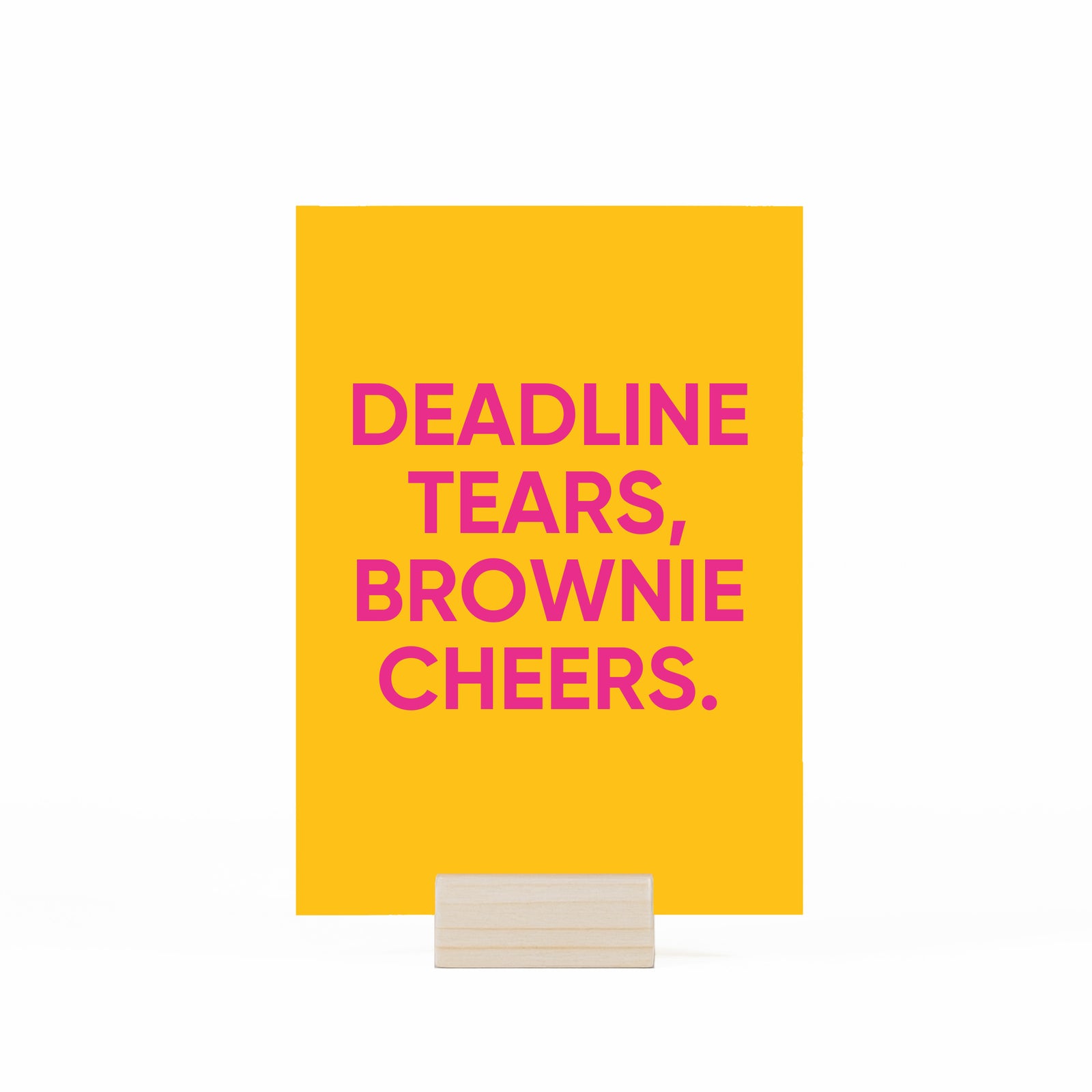 Soms vliegen de tranen eruit en de deadlines achter je aan. Deze cadeaubox is er voor iedereen die een beetje troost kan gebruiken, met een flinke dosis chocolade en een knipoog om de chaos door te komen. Perfect om te zeggen: huil, eet brownies, en ga daarna weer knallen.