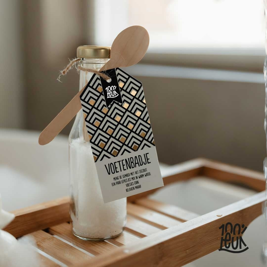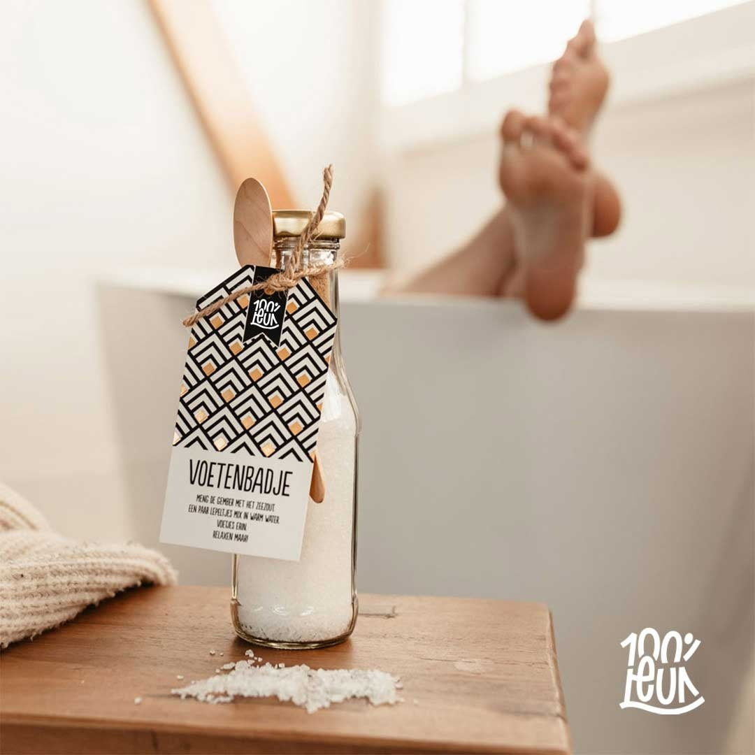 Geen een relaxmoment cadeau met dit heerlijke voetenbad! In deze hectische wereld is het belangrijk om af en toe een moment voor jezelf te nemen. Het voetenbadje is gevuld met zout en gember. Een perfecte combinatie van ingrediënten voor zijdezachte voetjes!