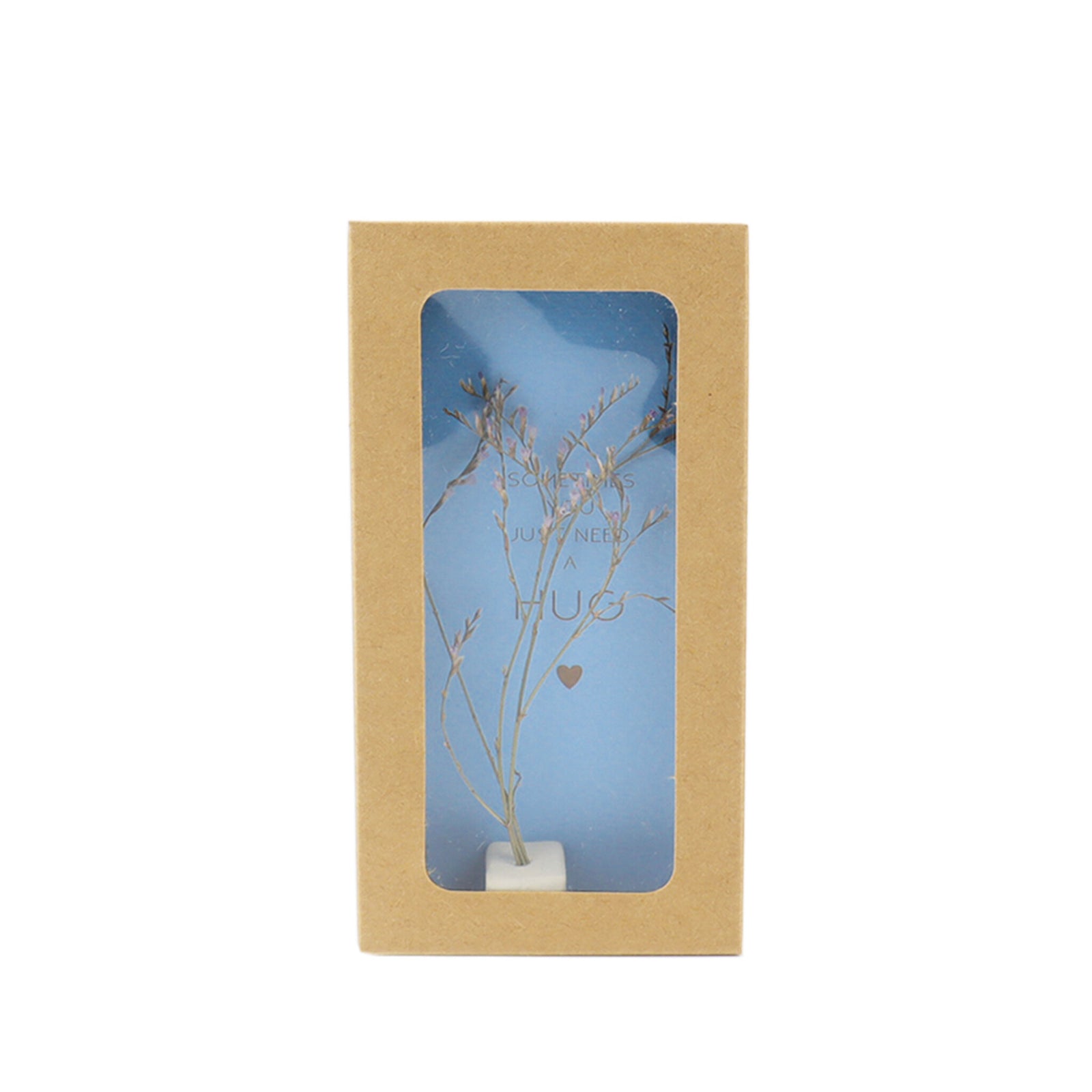 Verras iemand met een klein maar betekenisvol gebaar: het geschenkdoosje “Sometimes you just need a hug” met een lief droogbloemetje. Een perfect cadeautje om sterkte te wensen, iemand op te vrolijken of gewoon zomaar, omdat een knuffel soms precies is wat je nodig hebt.