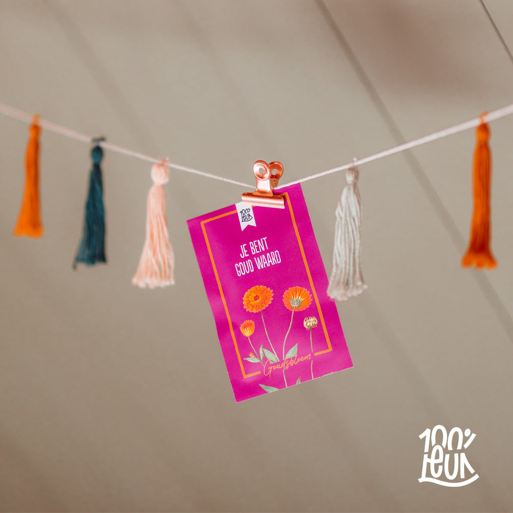 Geef een compliment dat van waarde is met dit zakje goudsbloem zaadjes – want jij bent echt goud waard! Deze prachtige bloemen zijn niet alleen een mooie manier om iemand te bedanken of te complimenteren, maar ook een fijne manier om een stukje natuur te delen. De goudsbloem is bekend om zijn vrolijke, dubbele bloemen en zijn lichte geur, wat hem tot een perfecte toevoeging maakt in iedere tuin.