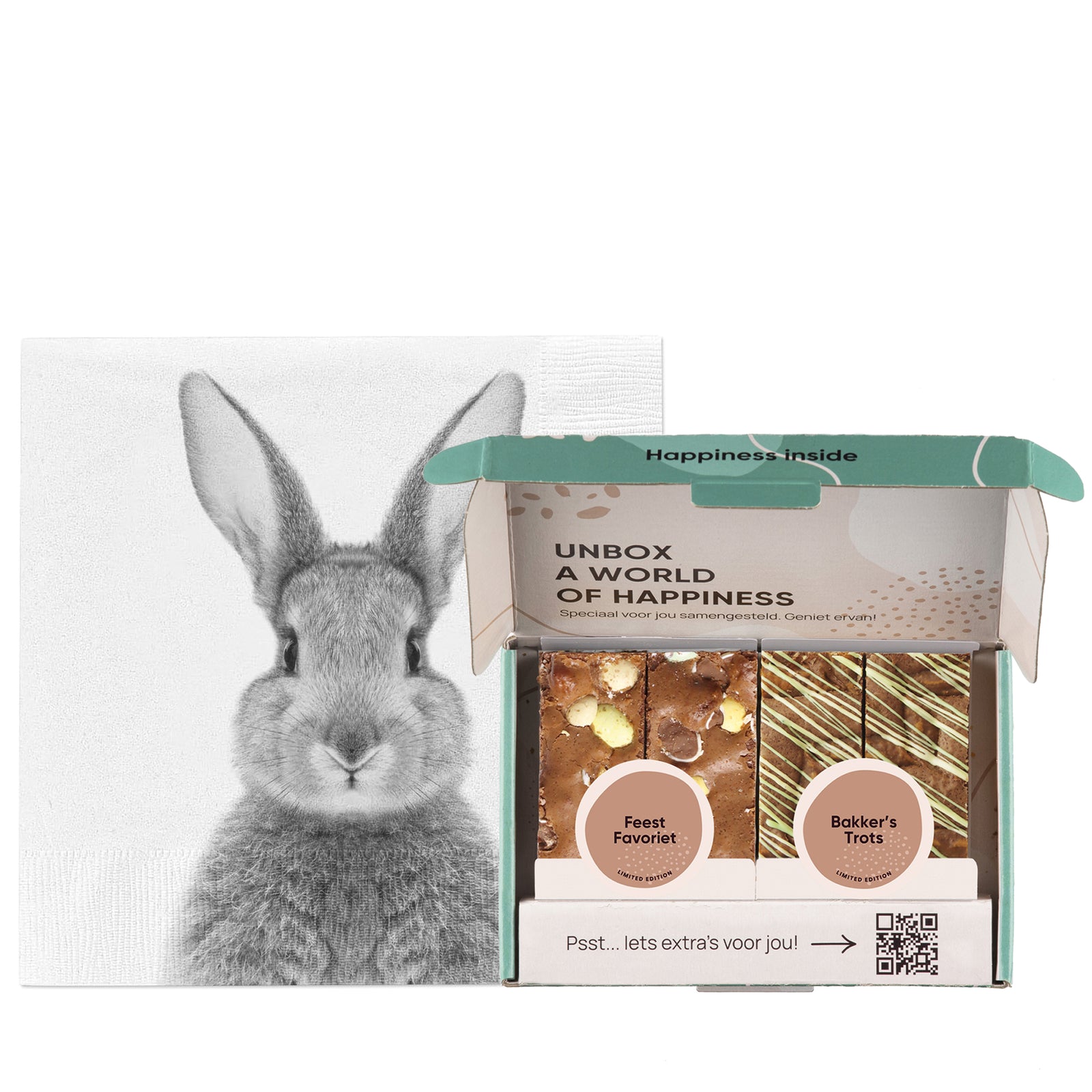Daarnaast bevat dit cadeau paashaas servetten, die meteen zorgen voor een vrolijke en feestelijke paastafel. Ideaal om het paasontbijt, de brunch of een gezellige koffiemoment extra bijzonder te maken.