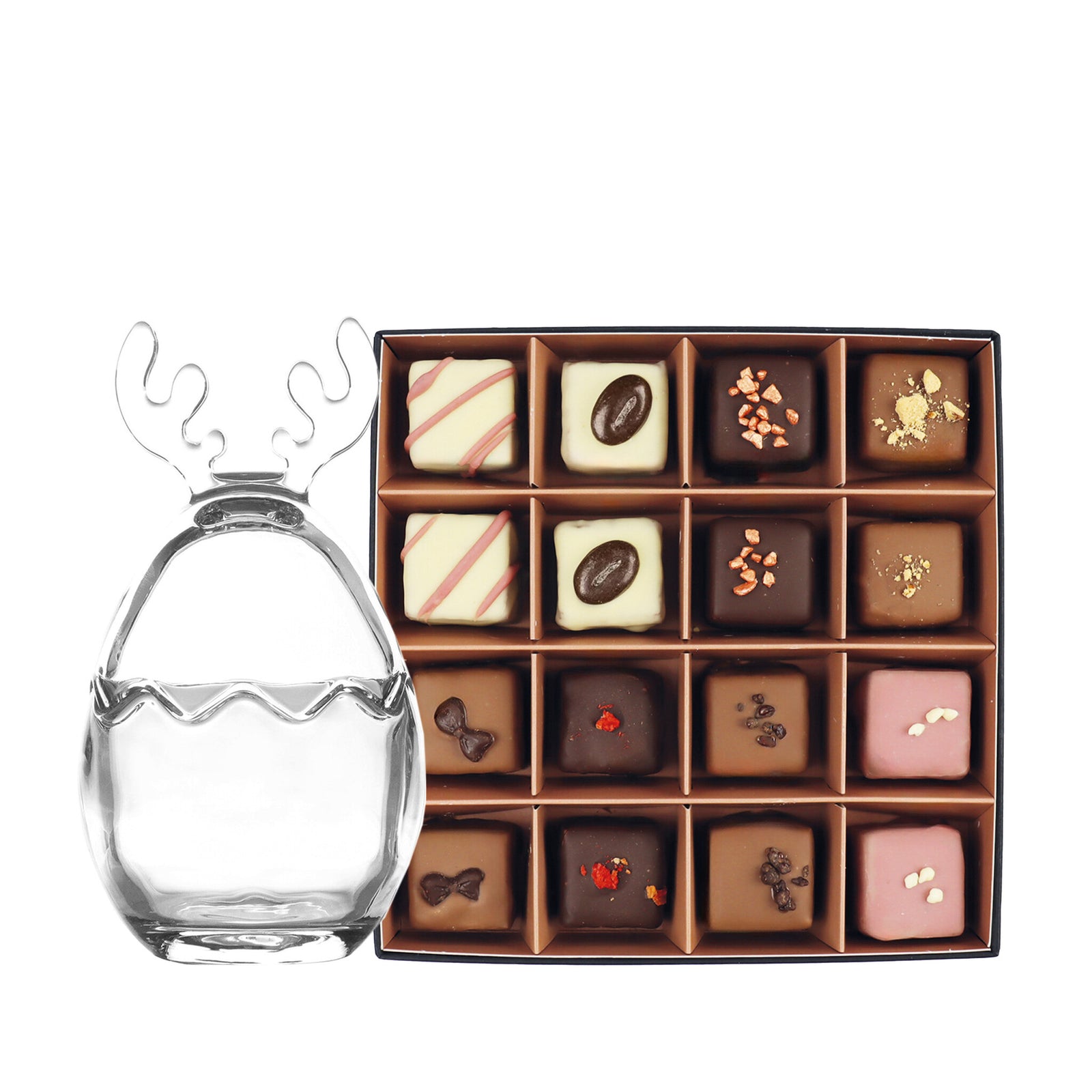 Maak je kersttafel compleet met de onweerstaanbare Brownie Bites, een zoete traktatie die de magie van de feestdagen naar je woonkamer brengt. Geserveerd in een elegante glazen bonbonnière met een speels rendiergewei, zijn deze lekkernijen niet alleen heerlijk om van te genieten, maar ook een echte eyecatcher op tafel.