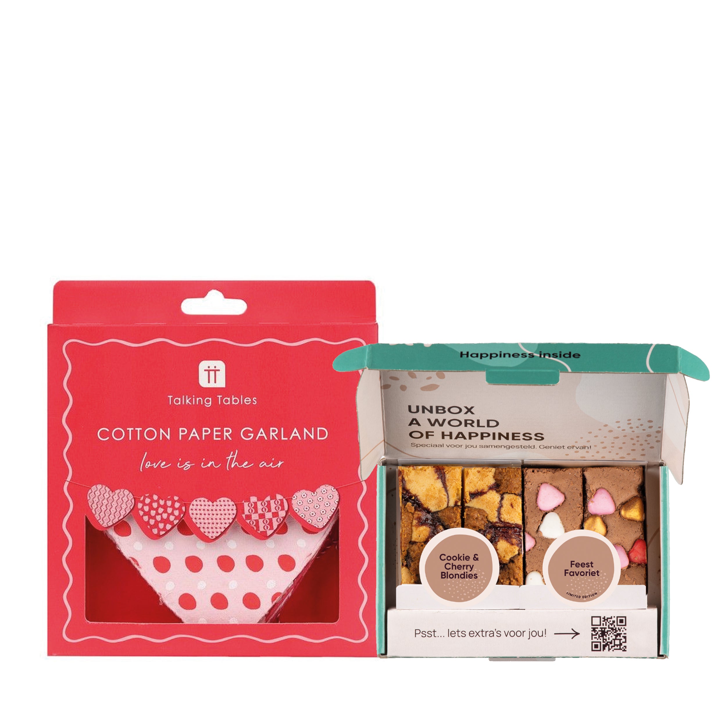 Heerlijke handgemaakte brownies met een vrolijke hartjes slinger die je ruimte in Valentijnsmodus zet. Gemaakt van gerecycled katoenpapier, dus je kunt genieten van al die liefde met een goed gevoel. Hang het boven het bed, in een deuropening of rond jullie favoriete hoekje voor die heerlijke romantische sfeer.